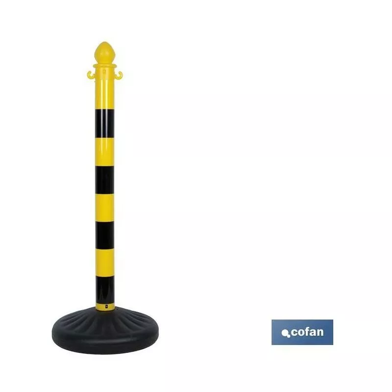 Poste para cadena de plástico con base incluida en color amarillo y negro con un metro de altura total.