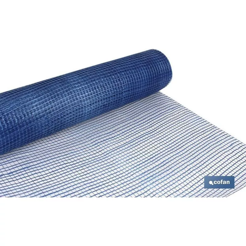Rollo 1x50 m Malla fibra de vidrio 10x10mm Revocos Mortero. Color Azul.