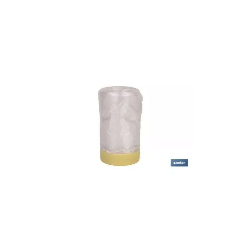 Rollo cinta crepe + plástico 80° con medidas de 35 60 90 120 180 260 y 360 cm.