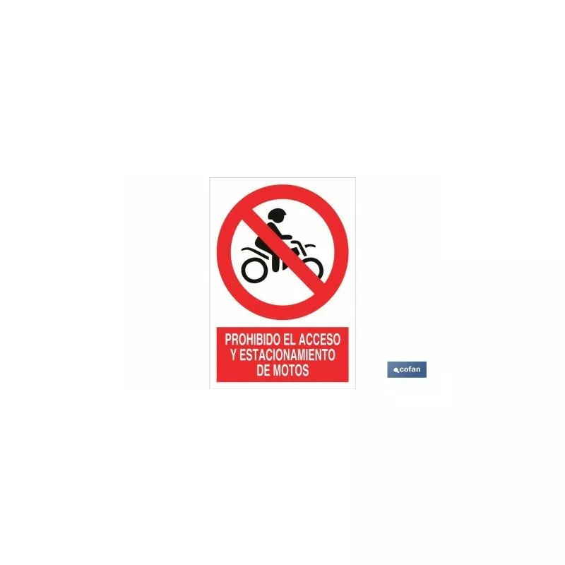 Señal Pictograma y Texto prohibido acceso de motos en varias medidas y materiales.