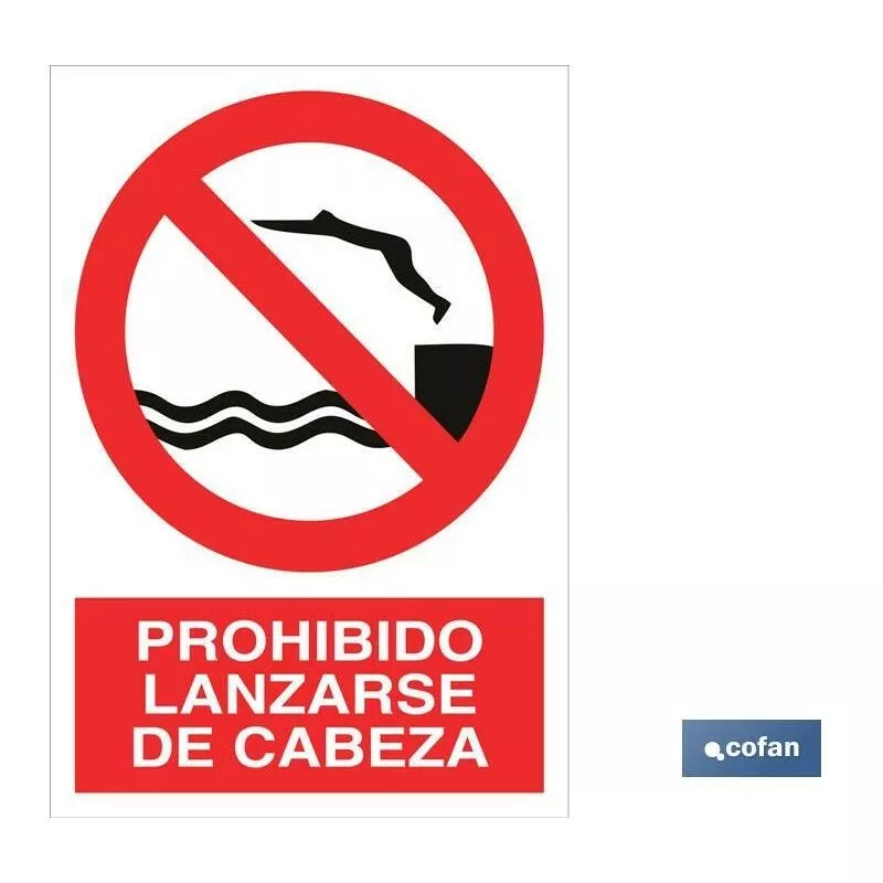 Señal Pictograma y Texto prohibido lanzarse de cabeza en varias medidas y materiales.