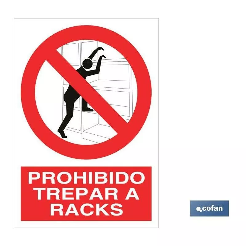 Señal Pictograma y Texto prohibido trepar a Raks en varias medidas y materiales.