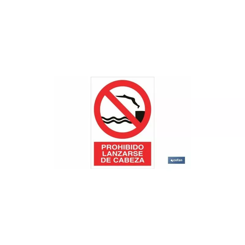 Señal Pictograma y Texto prohibido lanzarse de cabeza en varias medidas y materiales.
