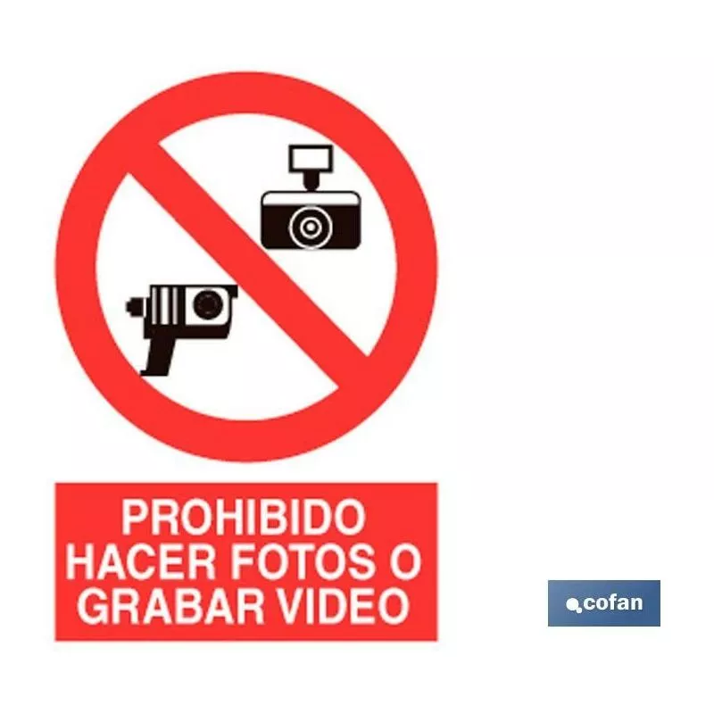 Señal Pictograma y Texto prohibido fotos y video en varias medidas y materiales.