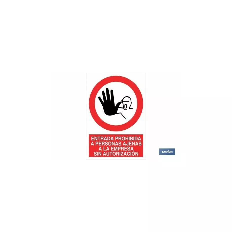 Señal de prohibición Entrada prohibida a personas ajenas a la empresa sin autorización. Tamaño y material a elegir.