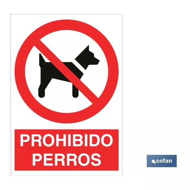 Señal Pictograma y Texto prohibido perros en varias medidas y materiales.