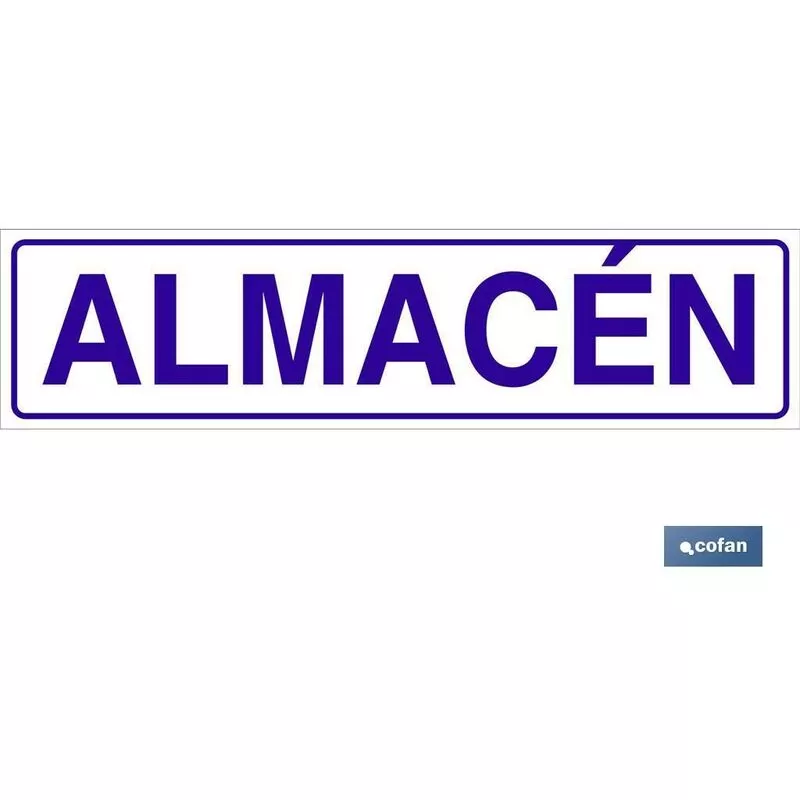 Señal informativa glasspack adhesiva con texto almacén. Tamaño a elegir.