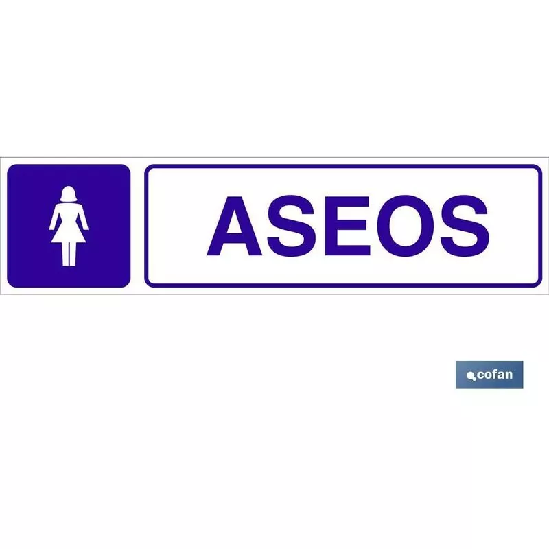Señal informativa glasspack adhesiva con texto e imagen de aseos señora.