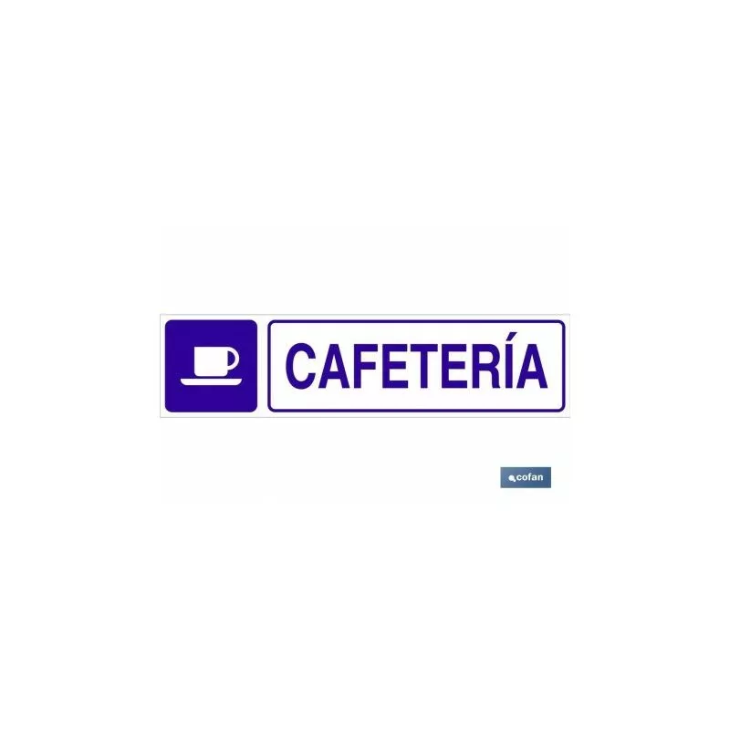 Señal informativa glasspack adhesiva con imagen y texto de cafetería.