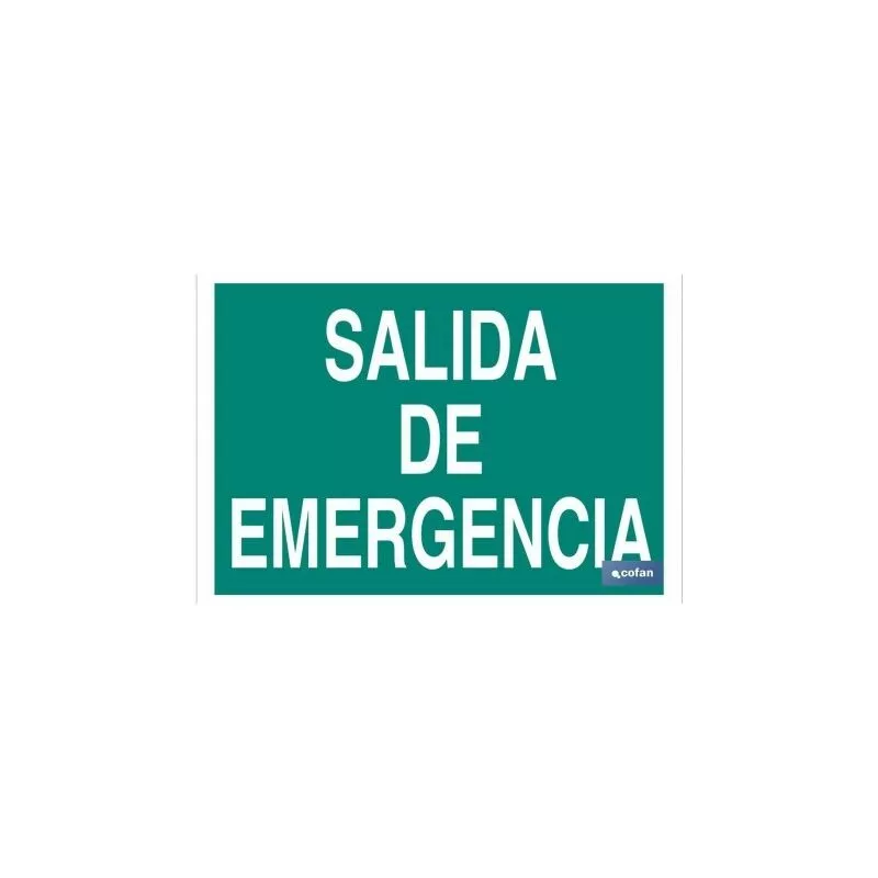 Señal de evacuación con texto salida de emergencia. Tamaño y material a elegir (luminiscente y adhesivo)