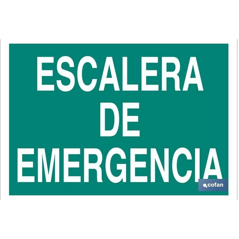Señal luminiscente de evacuación con texto Escalera de emergencia. Tamaño a elegir.