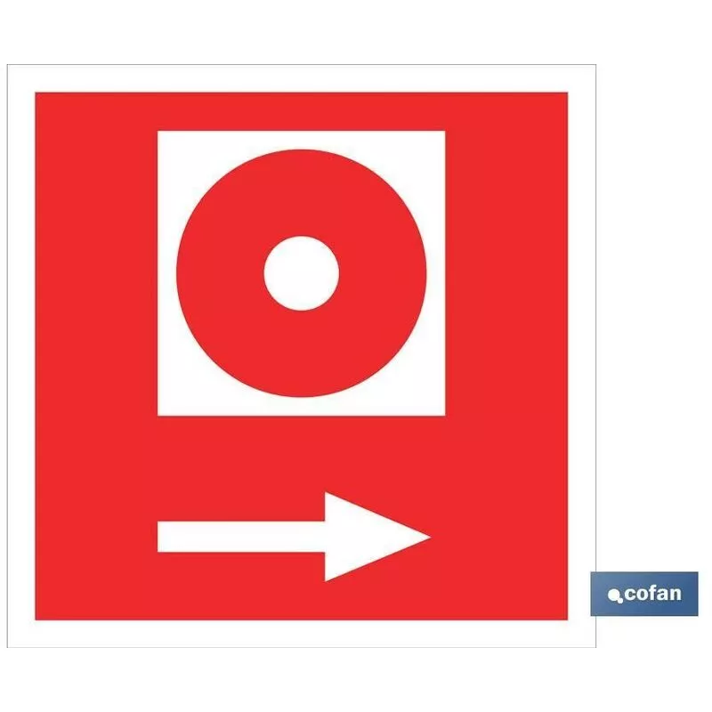 Señal Timbre de alarma luminiscente con flecha a la derecha en varias medidas.