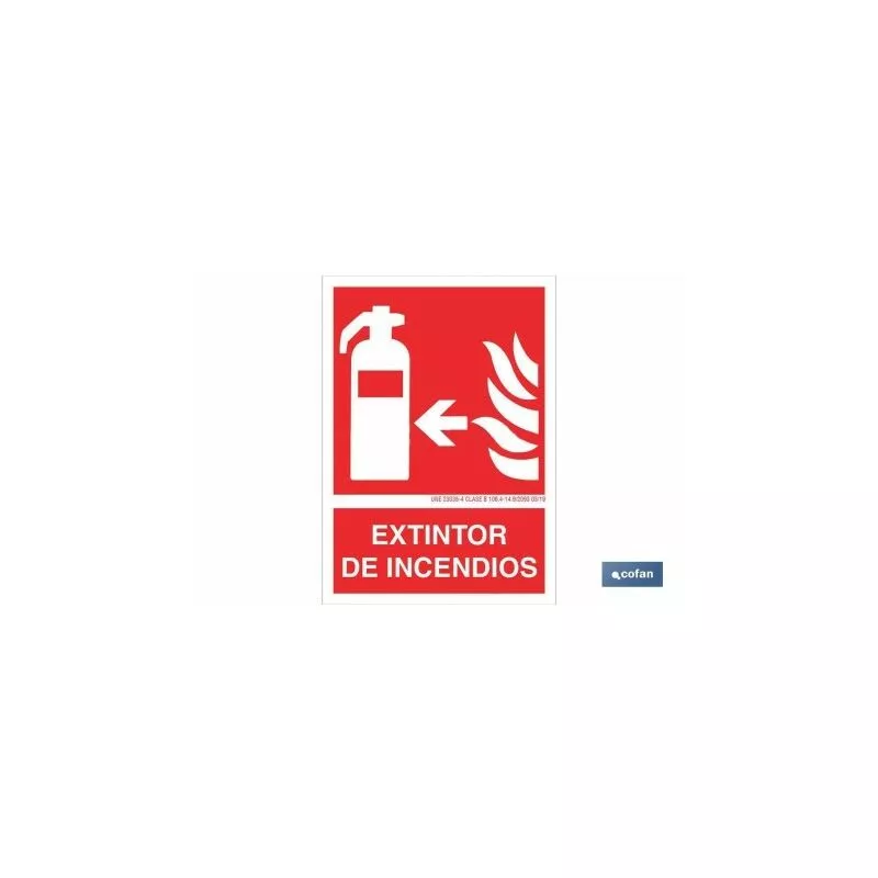 Señal luminiscente de socorro Extintor de incendios dirección izquierda. Tamaño a elegir.