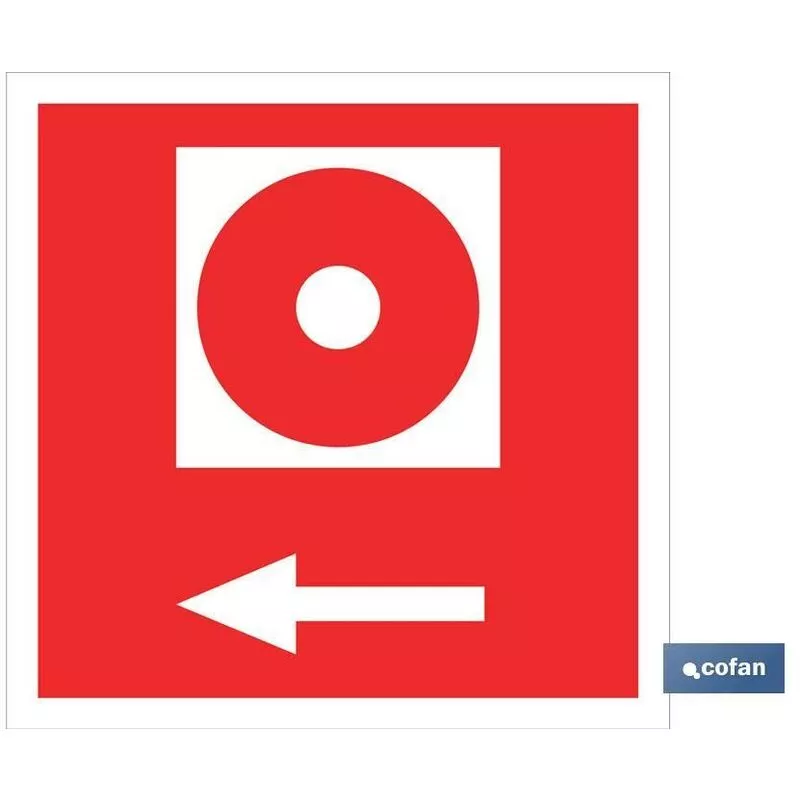Señal Timbre de alarma luminiscente con flecha a la izquierda en varias medidas.
