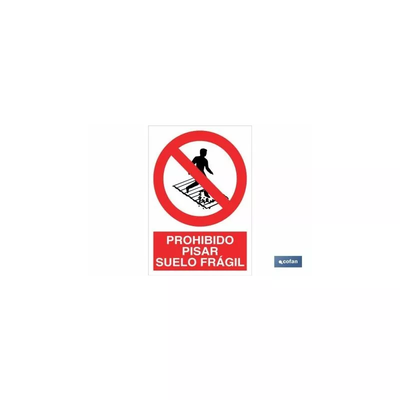 Señal Pictograma y Texto prohibido pisar suelo fragil en varias medidas y materiales.