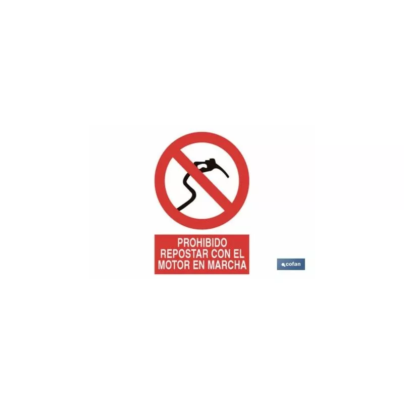 Señal Pictograma y Texto prohibido repostar motor en marcha en varias medidas y materiales.