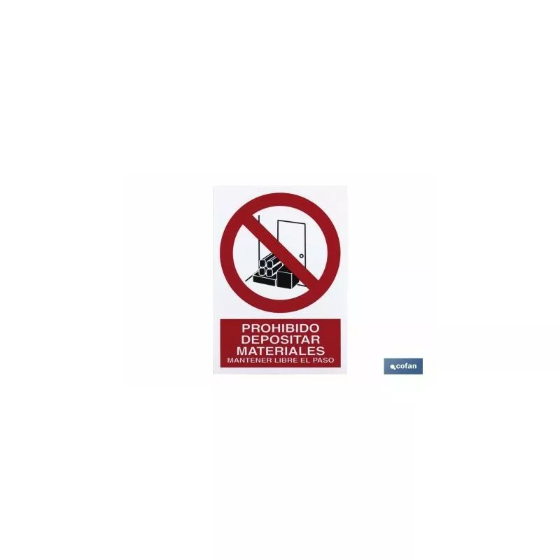 Señal Pictograma y Texto prohibido depositar materiales en varias medidas y materiales.