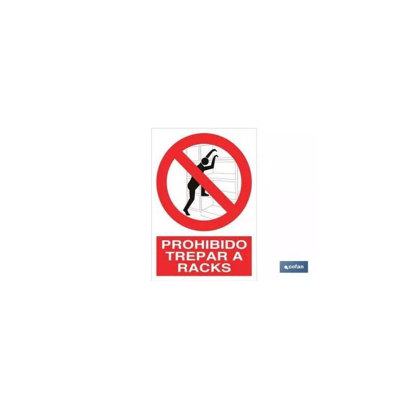 Señal Pictograma y Texto prohibido trepar a Raks en varias medidas y materiales.