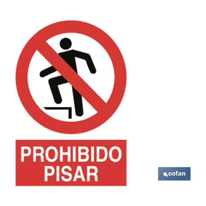 Señal Pictograma y Texto prohibido pisarl en varias medidas y materiales.