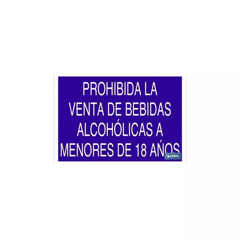 Señal informativa con texto de prohibida la venta de bebidas alcohólicas a menores de 18 años. Tamaño y material a elegir.
