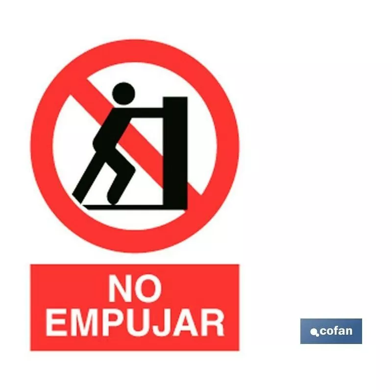 Señal Pictograma y Texto prohibido empujar en varias medidas y materiales.
