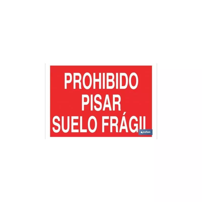 Señal texto prohibido pisar suelo fragil en varias medidas y materiales.