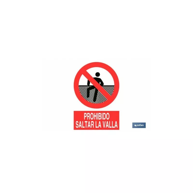 Señal Pictograma y Texto prohibido saltar la valla en varias medidas y materiales.
