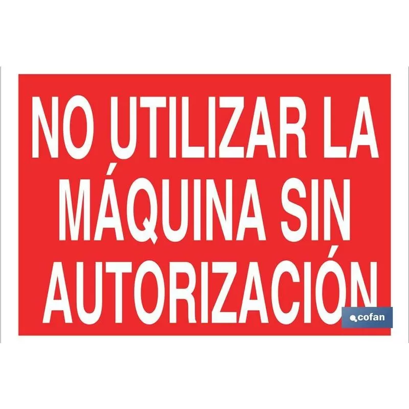 Señal de prohibición con texto No utilizar la máquina sin autorización.