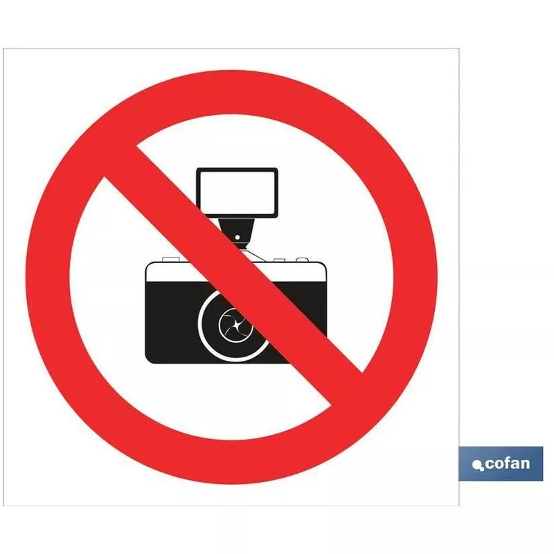 Señal Pictograma prohibido hacer fotos en varias medidas y materiales.