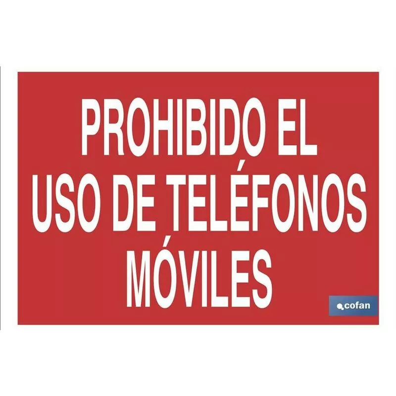 Señal Texto prohibido uso de teléfonos móviles en varias medidas y materiales.