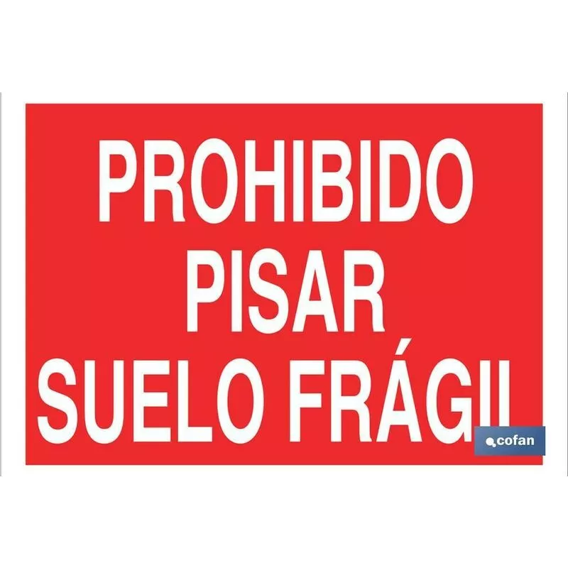 Señal texto prohibido pisar suelo fragil en varias medidas y materiales.