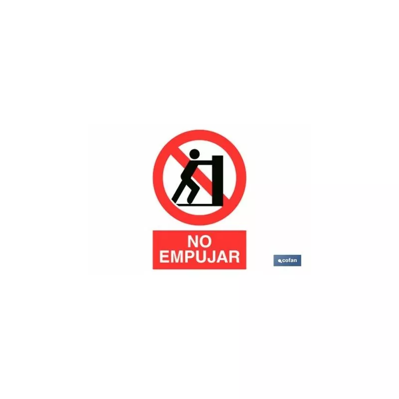 Señal Pictograma y Texto prohibido empujar en varias medidas y materiales.