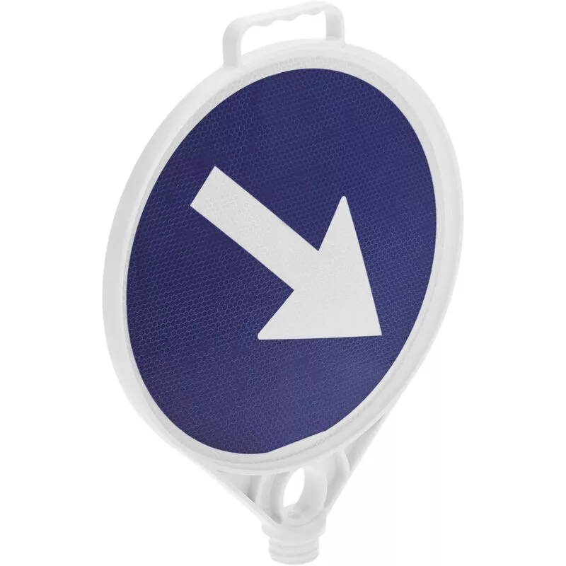 Se trata de una señal de tráfico para enroscar en postes de señalización. Baliza reflectante para ganar visibilidad en condiciones de poca luz. Ideal para regular el tráfico, por obras o señalizar zonas que requieran de señalización extra. Se pueden colocar para delimitar en carreteras, accesos, carriles, vías, autopistas, caminos etc. Especificaciones Baliza azul de paso obligatorio derecha para advertir la dirección correcta a los conductores. Ideal para delimitar carreteras, vías, calles u otros espacios para garantizar la seguridad de la zona. Dispone de sistema de enroscado en la parte inferior para colocar en un poste delimitador de señalización (#BB095 y #SE16x). Contiene un asa en la parte superior para facilitar el transporte. Permite la entrada de cadenas de señalización (#BB096) a través de un orificio en la parte baja. Fabricado en plástico PVC de alta calidad y resistencia a los impactos. Incluye una serie de protectores hexagonales reflectantes a la luz de los faros.