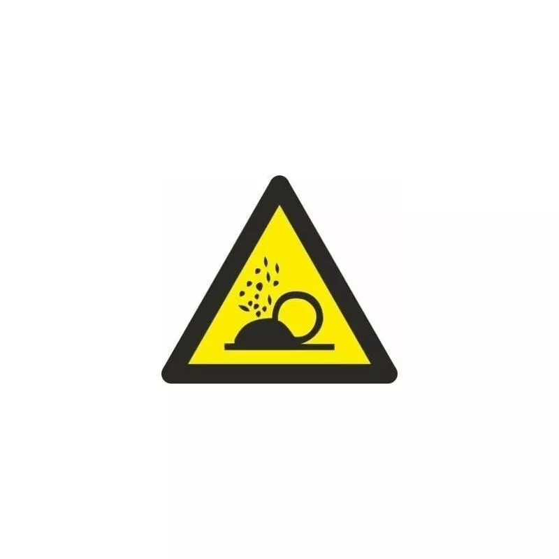Señal Peligro Proyección de Partículas Con Tintas UV. Lado de 90mm. 10 unidades incluidas en el precio.