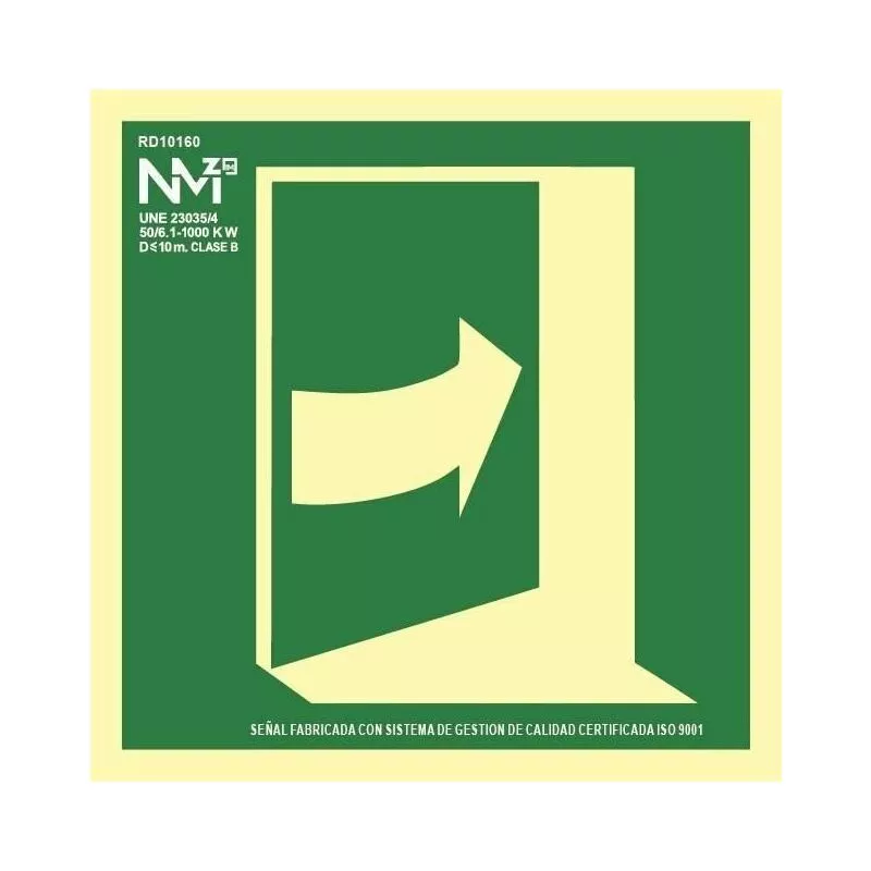 Señal Puerta Evacuacion Derecha Clase: B (PVC 0'7 mm) Medidas: 224X224