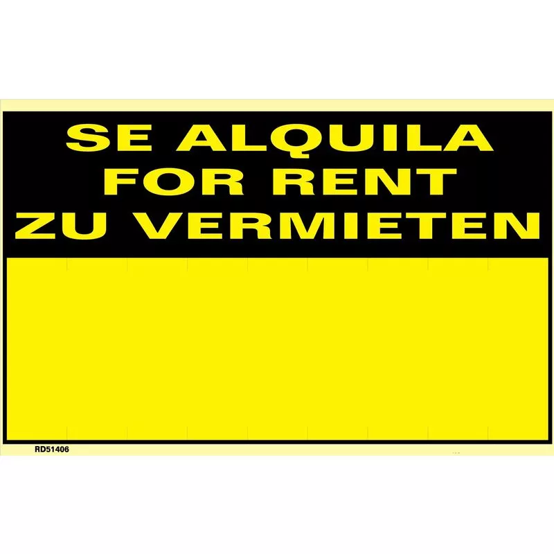 Señal Se Alquila/For Rent/Zu Vermieten | Amarillo - 350 x 450 mm