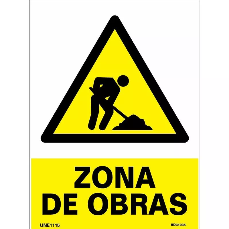 Señal Zona de Obras Con Tintas UV. Disponible en plancha de PVC, Aluminio y Adhesivo de vinilo. Diferentes medidas.