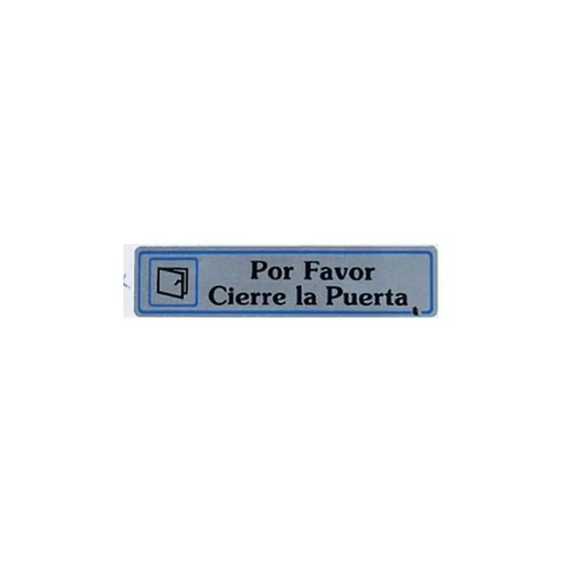 Placa Señal Adhesiva 175X040Mm Por Favor Cierre Puerta Aluminio Plata