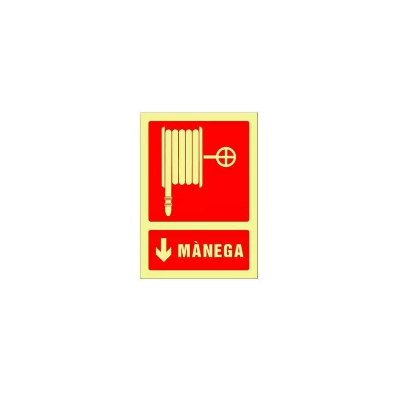 Se�alizaci�n de seguridad fotoluminiscente contra incendios en Catalan. Modelo "Mànega". Medidas 297 x 210mm.