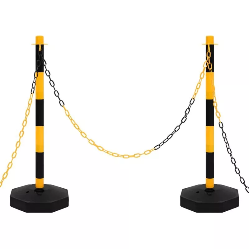 Este set de barrera de postes y cadena está diseñado como un medio económico pero eficaz para restringir ciertas áreas. Es adecuado para aparcamientos, almacenes, espacios públicos y carreteras privadas, etc. La cadena de plástico de 10 m se puede unir fácilmente a los postes de tráfico para crear un área restringida. El conjunto es ligero y, por lo tanto, portátil. Para mayor estabilidad, la base incluida se puede llenar con agua o arena. Los colores brillantes hacen que el conjunto de postes de tráfico sea uniforme visible en condiciones de poca luz. Color: Amarillo y negro Material del poste: PE Material de la cadena: Plástico Altura: 90 cm Dimensiones base: 28 x 28 cm (largo x ancho) Longitud de la cadena: 10 m La base de PE se puede llenar con arena o agua. Rápido y fácil de instalar y guardar Requiere montaje: Sí La entrega incluye: 2 x Postes 1 x Cadena SKU: 150956