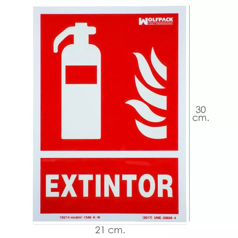 Cartel Extintor. - Medida: 30 x 21 cm. - Cartel / señal fluorescente en la oscuridad. - Fabricado bajo norma UNE 23035/4. - Realizado en plastico. - Articulo también conocido como: carteles, rotulos, señales.