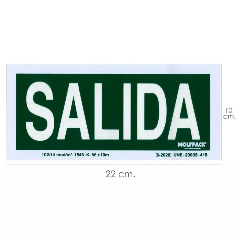 Cartel Salida - Medida: 22 x 10 cm. - Cartel / señal fluorescente en la oscuridad. - Fabricado bajo norma UNE 23035/4. - Realizado en plastico. - Articulo también conocido como: carteles, rotulos, señales.