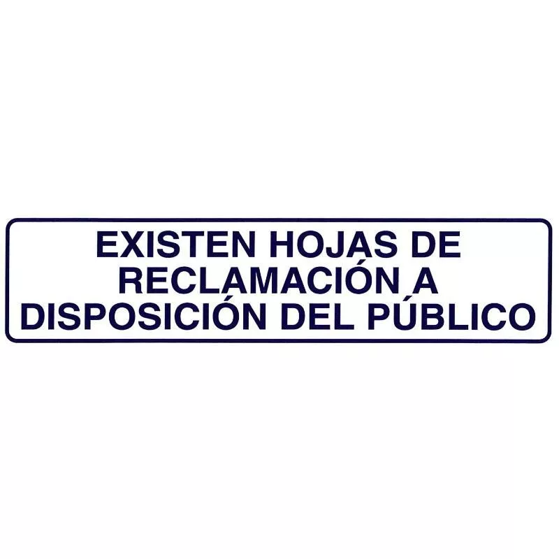 Rotulo adhesivo existen hojas reclamaciones - Medida: 250x63mm. - Realziado en plastico. - Gran adherencia sobre la mayoria de las superficies. - Articulo también conocido como: carteles, rotulos, señales.