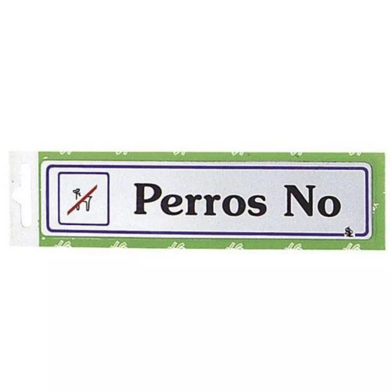 Rotulo perros no - Medida: 17,5 x 4 cm. - Adhesivo. - Efecto metal. - 1 unidad. - Articulo también conocido como: carteles, rotulos, señales.